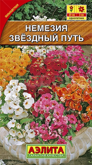Одно из самых ярких и праздничных однолетних растений с богатой палитрой окрасок цветков. Цветет обильно и продолжительно, с июня до окончания сезона. Кустики сильноветвистые, высотой 15-20 см. Многочисленные цветки диаметром до 3 см собраны в рыхлые соцветия. Немезии неприхотливые, холодостойкие, светолюбивые, не выносят пересыхания почвы. Отлично смотрятся в бордюрах, на переднем крае клумб, подходят для выращивания в вазонах и балконных ящиках.
